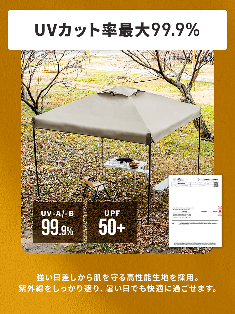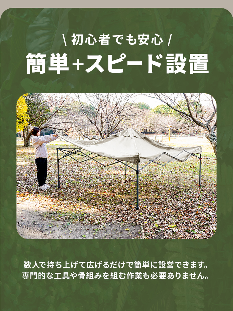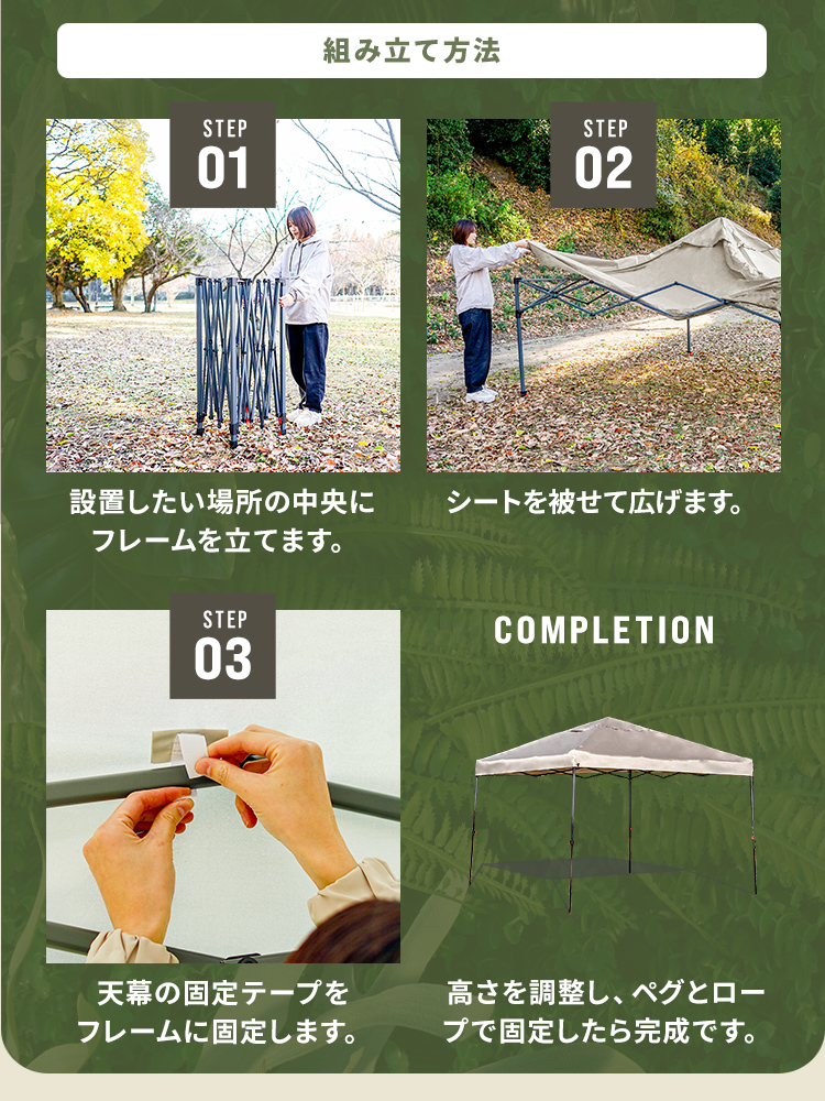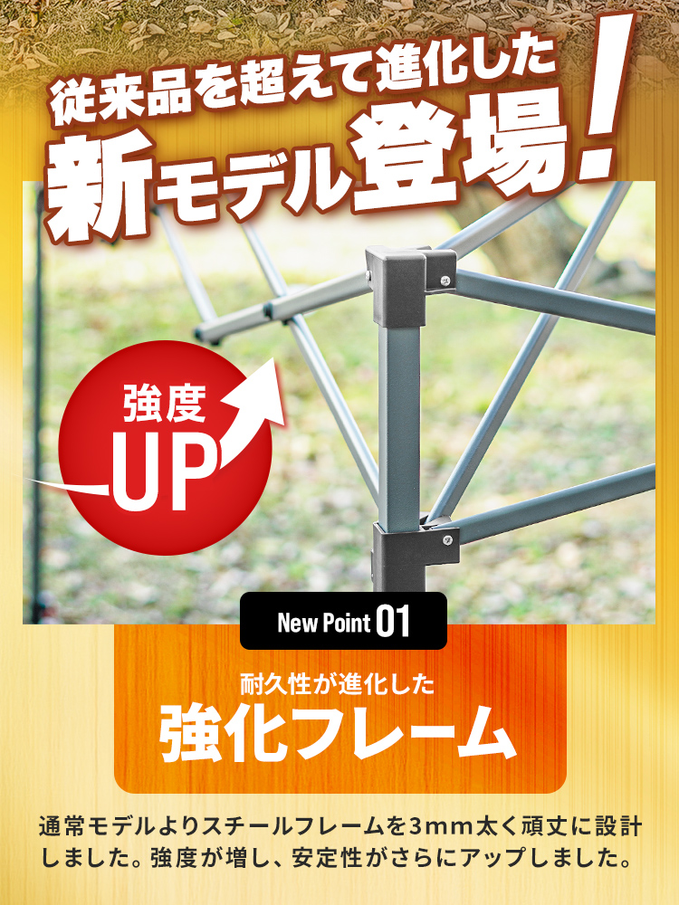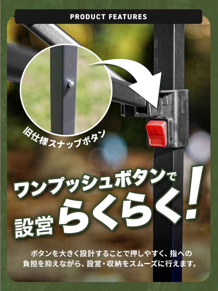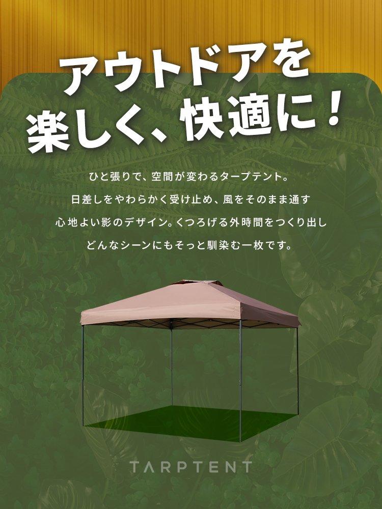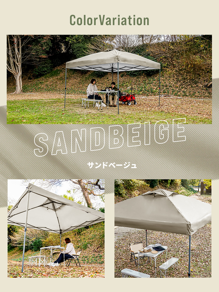 選べる3サイズ展開のワンプッシュタープテントです。