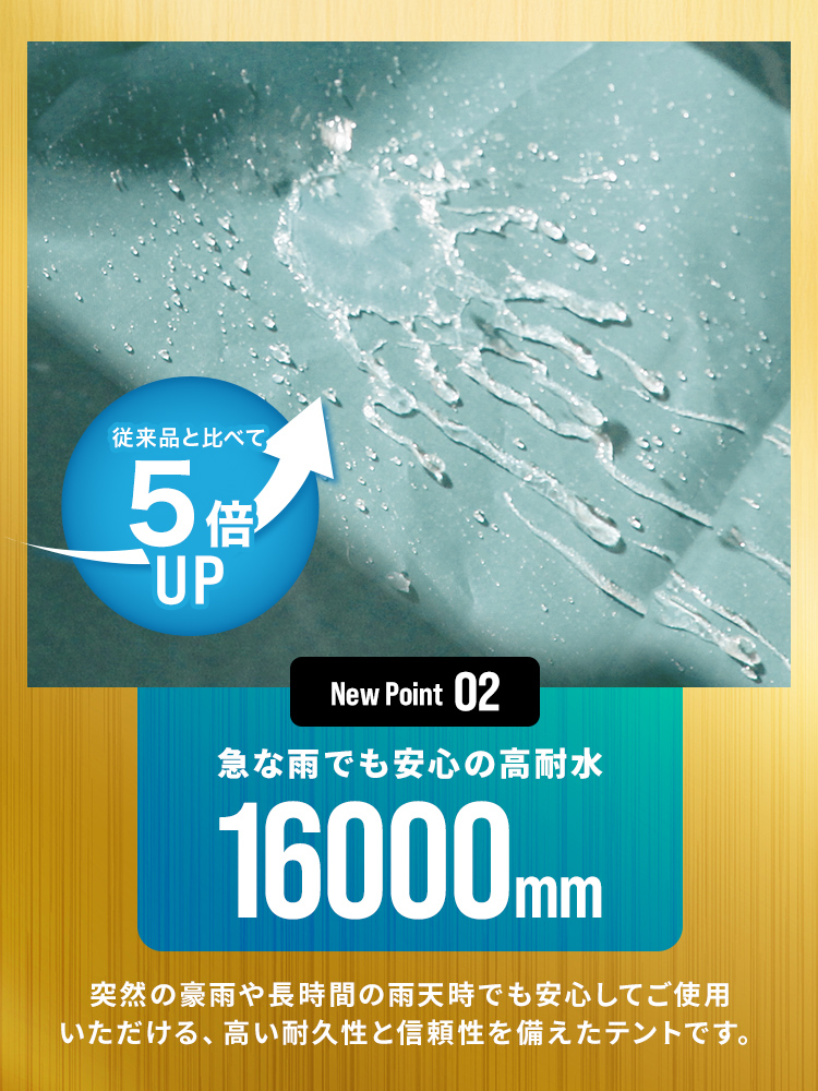 ・テント生地には撥水加工が施されていますが、雨天・豪雨下での完全防水を保証するものではございません。