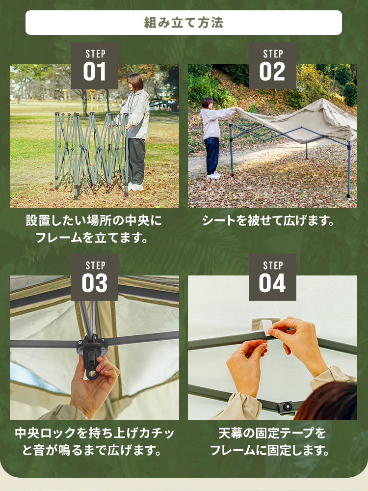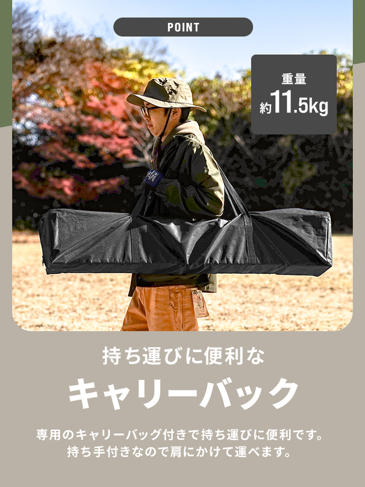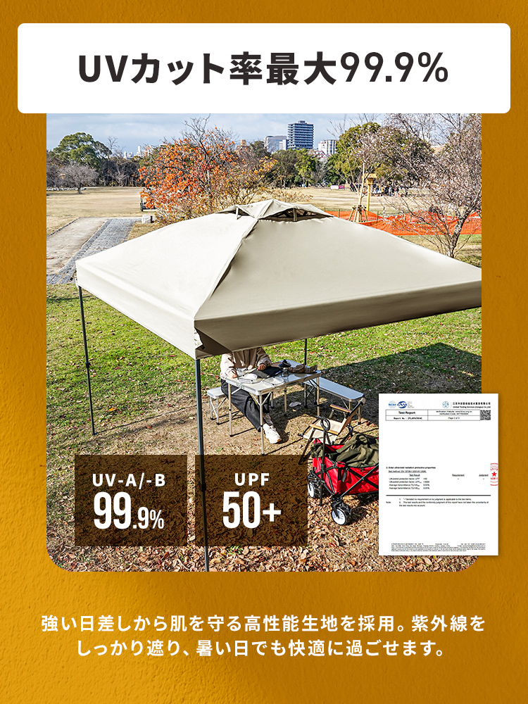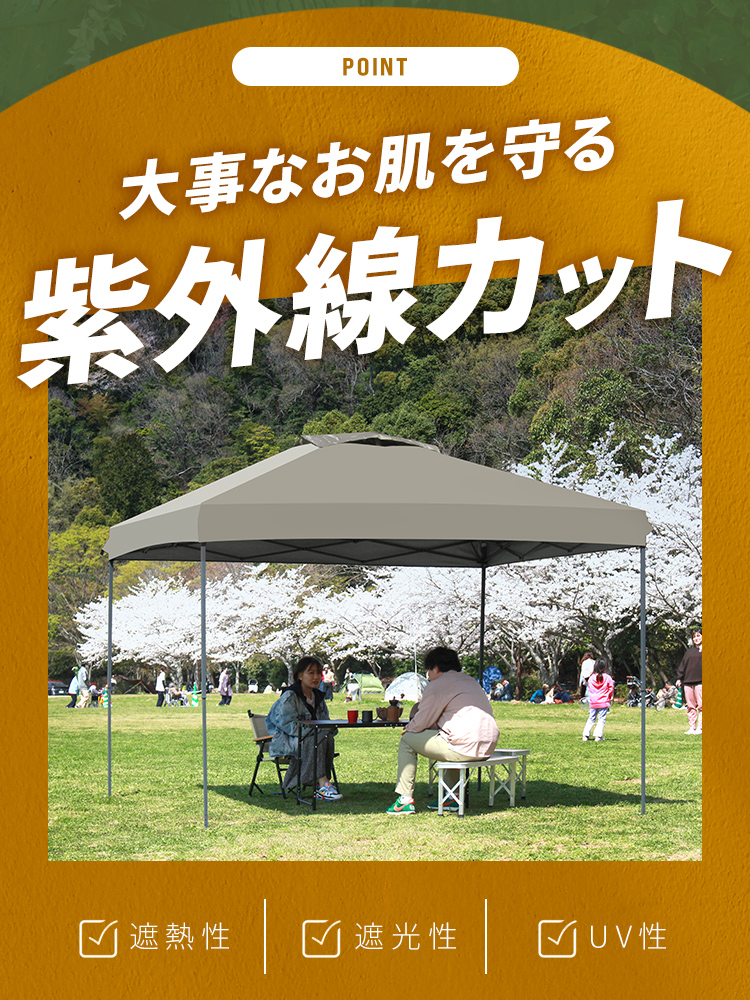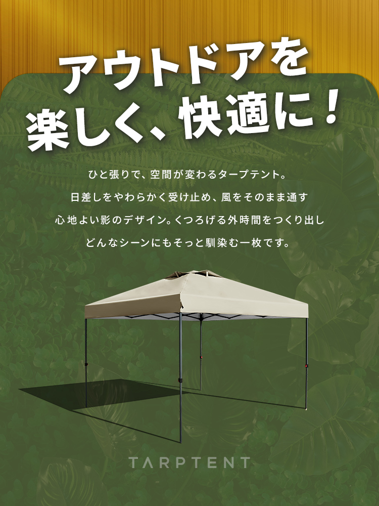 選べる3サイズ展開のワンプッシュタープテントです。