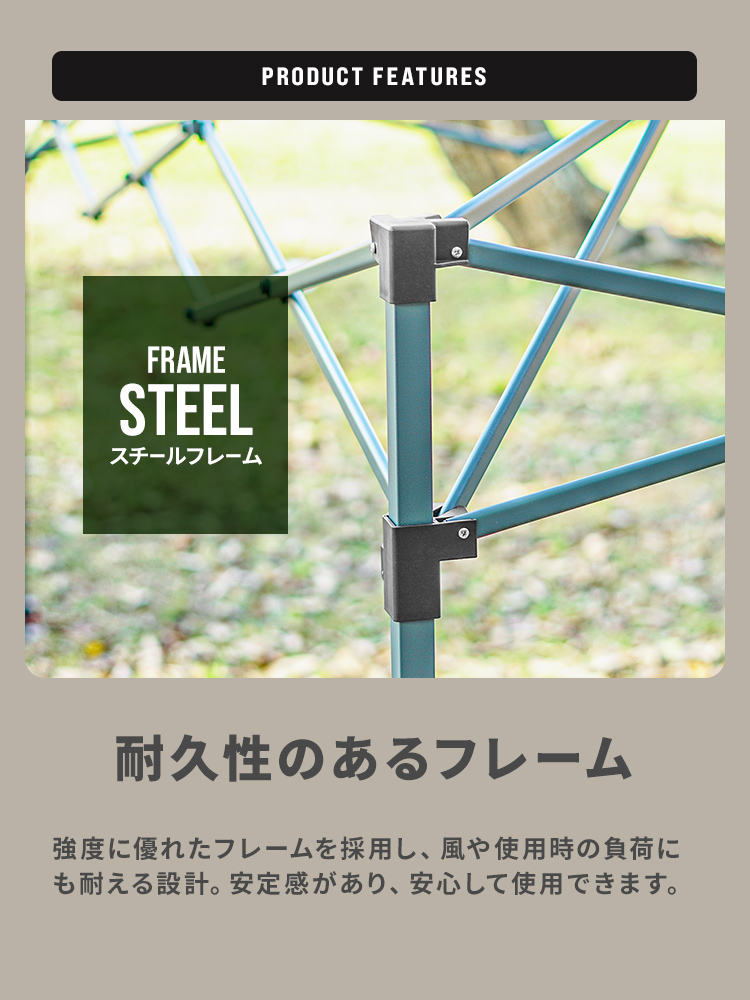 フレームは強度で耐久性のあるスチール製を採用!